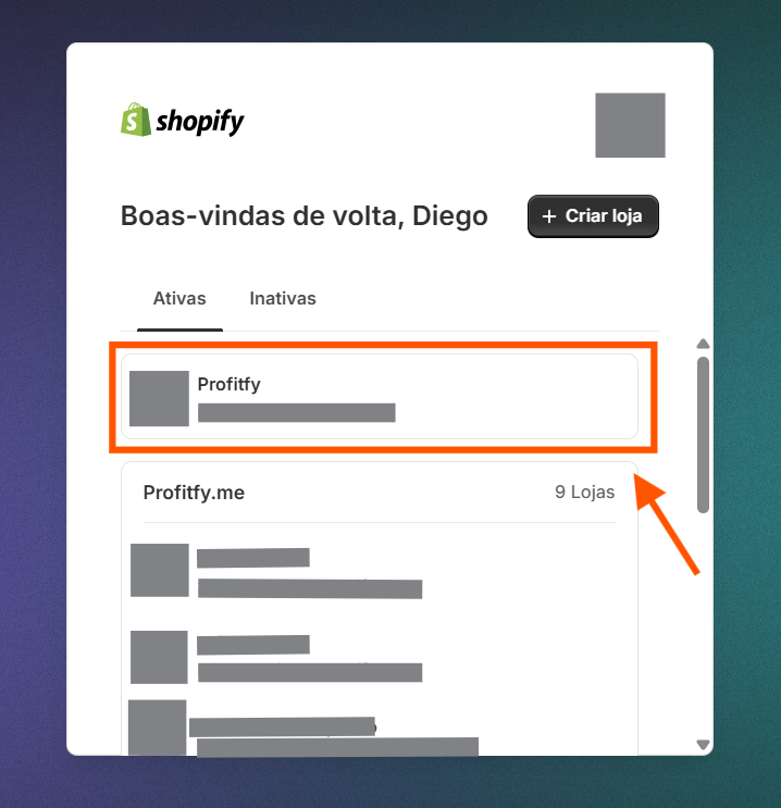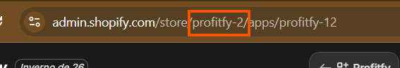 Para pegar a URL, basta copiar a URL da shopify e colocar na Profitfy