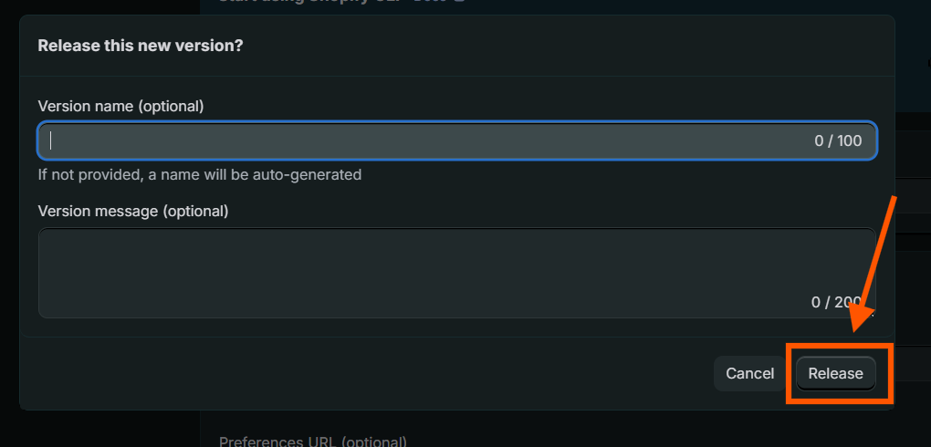 5. Após configurar os scopes basta voltar para cima na pagina e então clicar em Release. Em seguida aparecerá um pop-up perguntando se você quer lançar uma nova versão, confirme clicando novamente em Release!