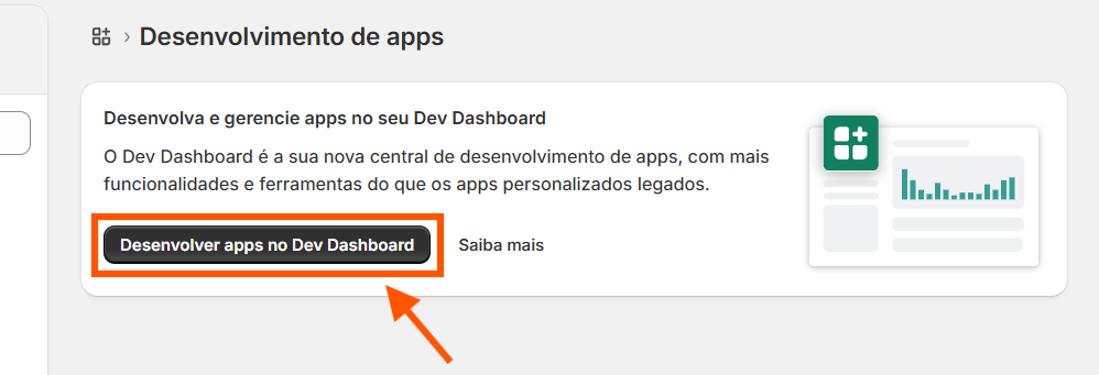 2. Em seguida basta clicar em Apps > Desenvolver Apps e então é só clicar em Desenvolver apps no Dev Dashboard, em seguida uma nova pagina será aberta.
