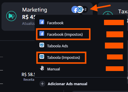OBS.: Atualmente, só é possível configurar o imposto para Facebook/Meta ou Taboola. Para as demais plataformas de marketing, essa configuração não está disponível.